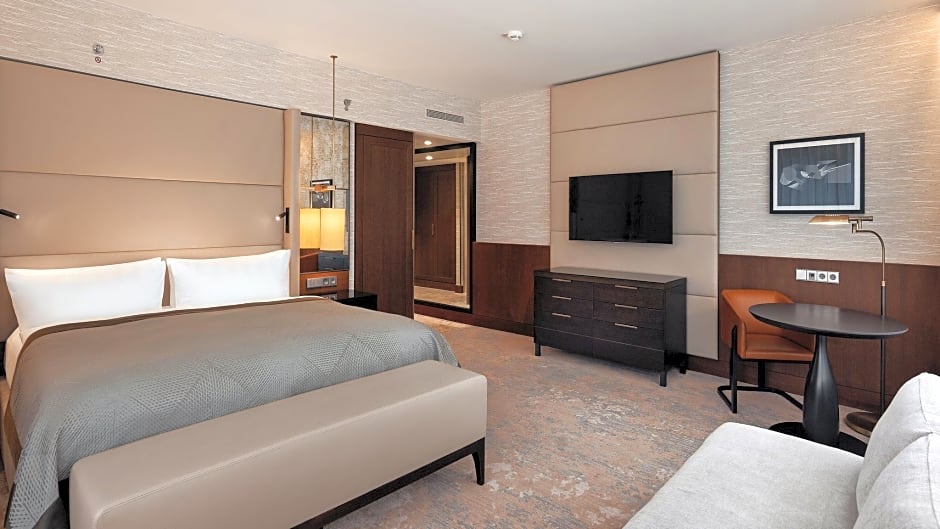 Air-conditioned room offers a private balcony and an private bathroom. Includes a TV and a fridge.